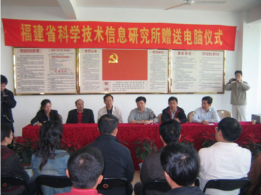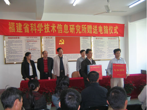 為支持基層科技信息化工作的開展,2008年11月20日,省科技信息研究所向漳浦縣科技局捐贈電腦儀式在漳浦縣科技局舉行。省科技信息研究所所長、研究員朱祥枝同志代表福建省科技信息研究所,向漳浦縣科技局贈送10臺電腦,用于支持漳浦縣科技局培訓(xùn)中心建設(shè)。