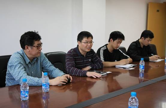 圖:科技部中國農(nóng)村技術開發(fā)中心星火與信息處袁學國博士(左二)和農(nóng)村黨員干部遠程教育《農(nóng)村科技》節(jié)目總編焦林(左一)一行