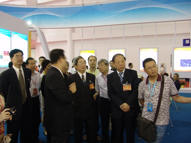 在今年舉辦的中國•海峽項(xiàng)目成果交易會(簡稱“6•18”)上,由省臺辦主辦、省科技信息研究所和福建省臺灣文獻(xiàn)信息中心科學(xué)技術(shù)館協(xié)辦的臺灣展區(qū),展出了67個項(xiàng)目成果,其中我所(館)負(fù)責(zé)聯(lián)系了34個項(xiàng)目成果,受到有關(guān)領(lǐng)導(dǎo)和社會的關(guān)注。全國政協(xié)常委、港澳臺僑委員會副主任、原省委書記陳明義和省政協(xié)副主席葉家松、李川一起詳細(xì)參觀了臺灣展區(qū),聽取了臺灣人士對相關(guān)項(xiàng)目成果的介紹,現(xiàn)場體驗(yàn)了項(xiàng)目成果,并與參展臺胞合影留念。