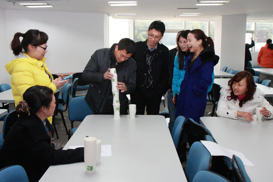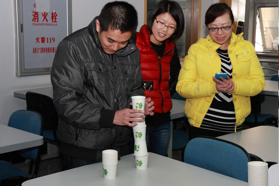 本次活動(dòng)共設(shè)置了“蒙眼點(diǎn)金”、“水上吹球”、“衣架連連看”、“紙杯搭塔”、“男女雙人背夾氣球跑步競賽”等6個(gè)趣味性很強(qiáng)的項(xiàng)目,活動(dòng)形式新穎、活潑。