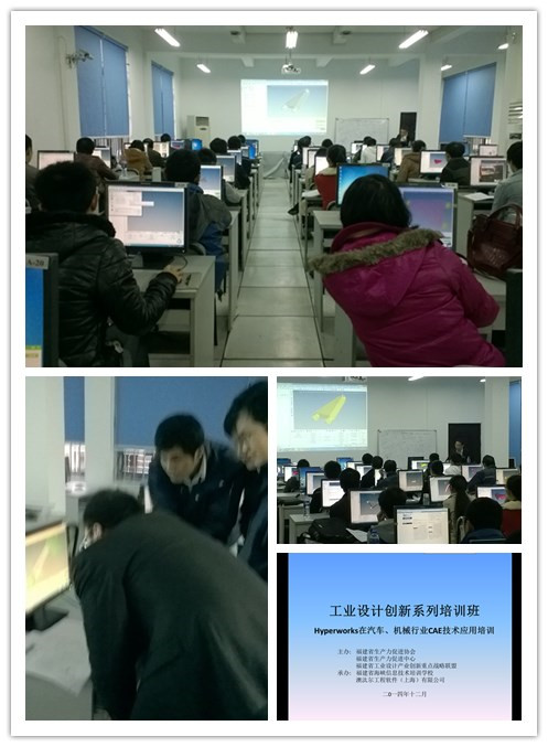 2014年12月11~12日,由福建省生產(chǎn)力促進協(xié)會、福建省生產(chǎn)力促進中心、福建省工業(yè)設(shè)計產(chǎn)業(yè)技術(shù)創(chuàng)新重點戰(zhàn)略聯(lián)盟主辦,福建省海峽信息技術(shù)學(xué)校、澳汰爾工程軟件(上海)有限公司承辦的工業(yè)設(shè)計創(chuàng)新系列——Hyperworks在汽車、機械行業(yè)CAE技術(shù)應(yīng)用培訓(xùn)班在海峽信息學(xué)校成功舉辦。福建省生產(chǎn)力促進中心副主任楊志鵬、福建省工業(yè)設(shè)計產(chǎn)業(yè)技術(shù)創(chuàng)新重點戰(zhàn)略聯(lián)盟秘書長林寧思出席會議。