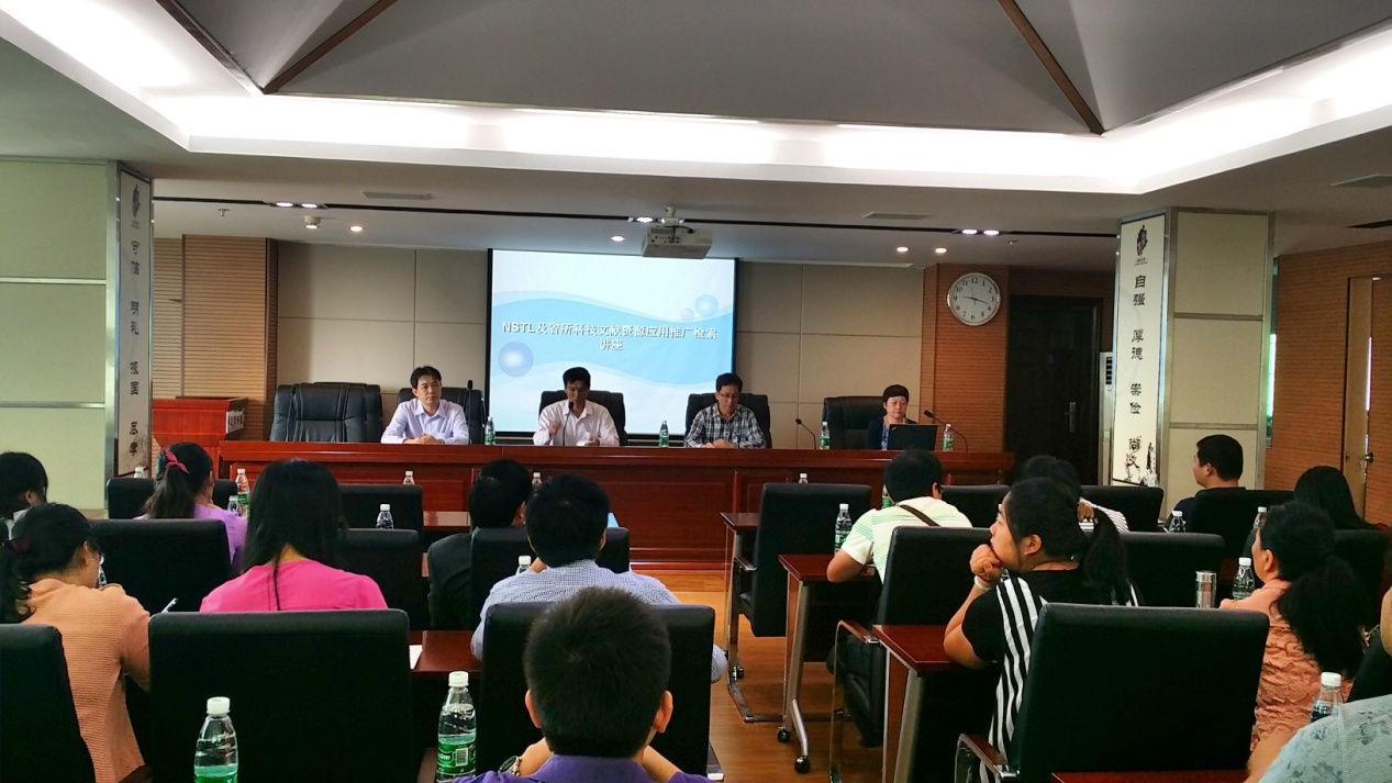 文獻(xiàn)資源室副主任錢莉萍就省所科技文獻(xiàn)資源應(yīng)用作了講座,劉少俊就NSTL的資源、使用及服務(wù)效果作了講座,并發(fā)放了NSTL免費試用卡。